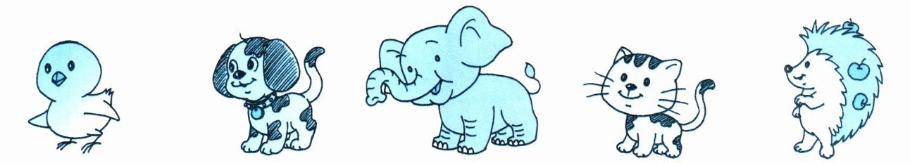 从左到右依次为小鸟、小狗、大象、小猫、刺猬,所以对应的顺序是: