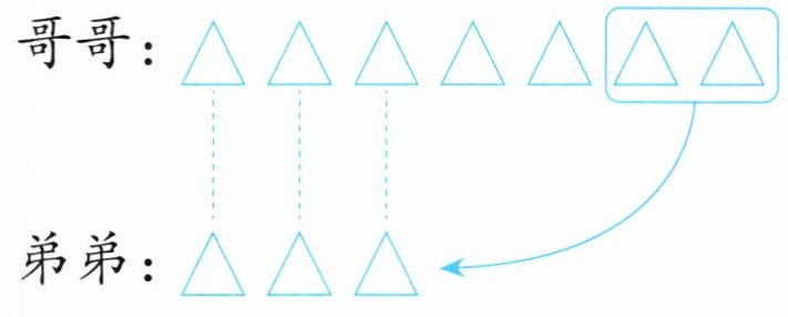 从图中可知,哥哥有$7$个$\triangle$,弟弟有$3$个$\triangle$。