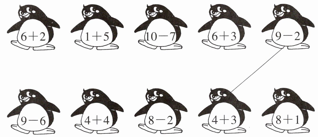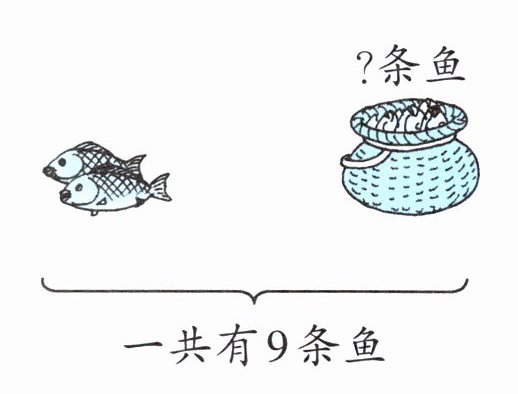 解析:第一个图考查10以内数的减法。已知鱼的总数和其中一部分,求另一部分,用减法计算。