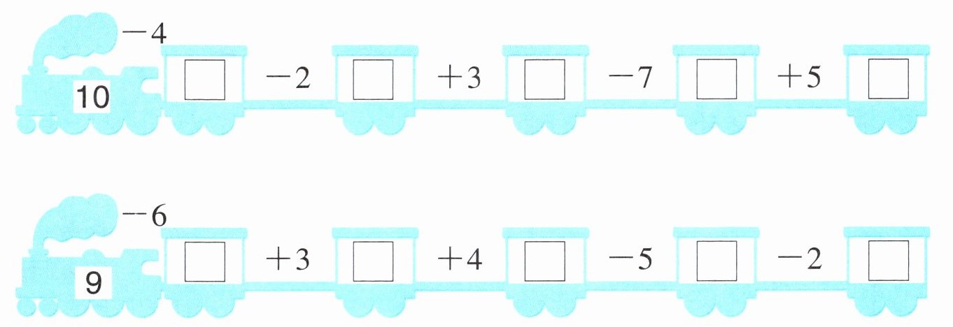 已知第一节车厢的数字是$10$,后面依次进行$ - 4$,$ - 2$,$ + 3$,$ - 7$,$ + 5$的运算。