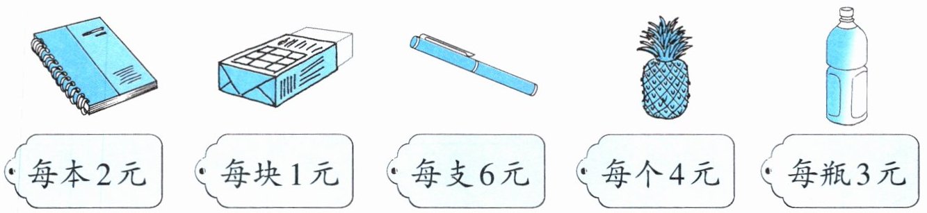 (1)由图可知一本笔记本$2$元,一块橡皮$1$元,一支笔$6$元。