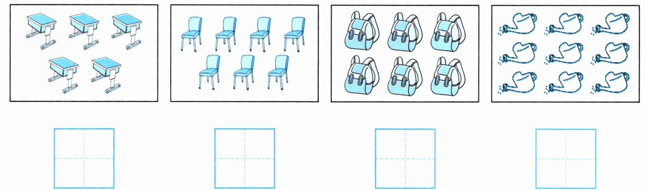 解析:本题考查数数和画图,根据上方数字,画出相应数量的图形即可。