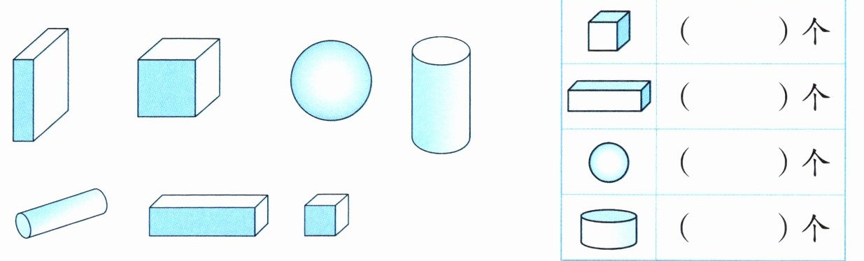 解析:本题主要考查对长方体、正方体、圆柱和球这几种立体图形的识别和计数。