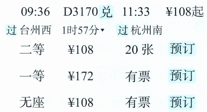 4 某小学的 16 位教师从台州前往杭州参加观摩研讨会,查询车票信息如下图。请你帮忙算一算,买单程票至少需要多少元?
