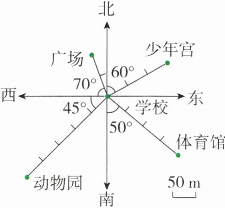 )m。(2)少年宫在学校的(