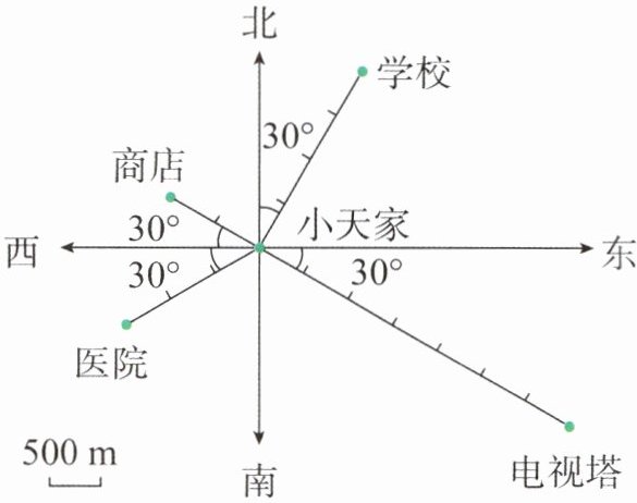 )。A. 学校在小天家的东偏北30°方向