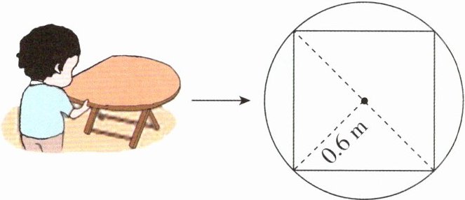 3 一张可折叠的圆桌,半径是0.6 m,折叠后成了正方形(如图)。折叠部分的面积约是多少平方米? (结果保留两位小数)