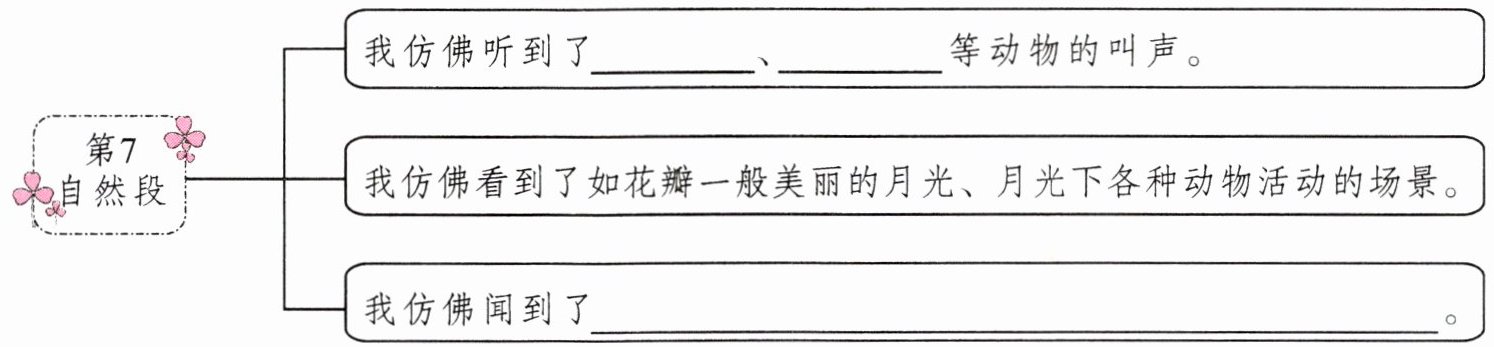4. 读第 7 自然段,调动听觉、视觉和嗅觉,完成下面的思维导图。