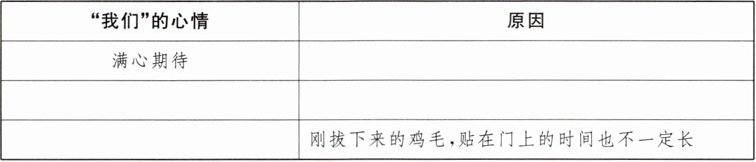 3. 读短文,体会人物心情的变化过程,把表格补充完整。