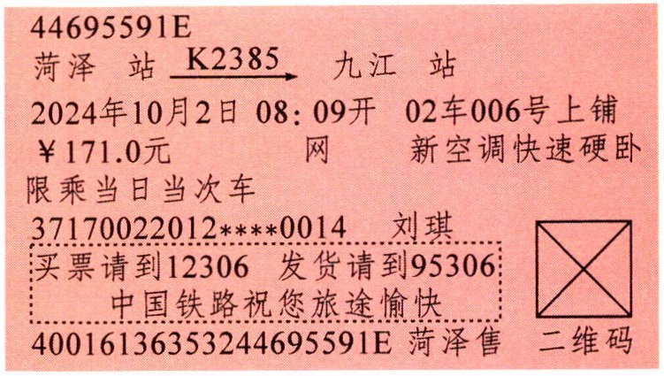 元。2. 以下哪些信息是无法从车票上获取的?(