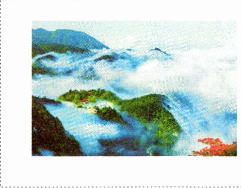 刚刚还是一片浩瀚的云海,被山风一吹,一会儿工夫,眼前就变成了一条条潇洒飘逸的玉带云。
