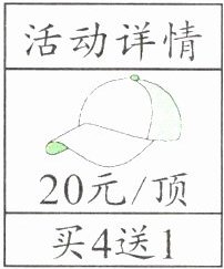 四、某运动服饰店店庆活动火热进行中,帽子买4送1,260元最多可以买多少顶帽子?