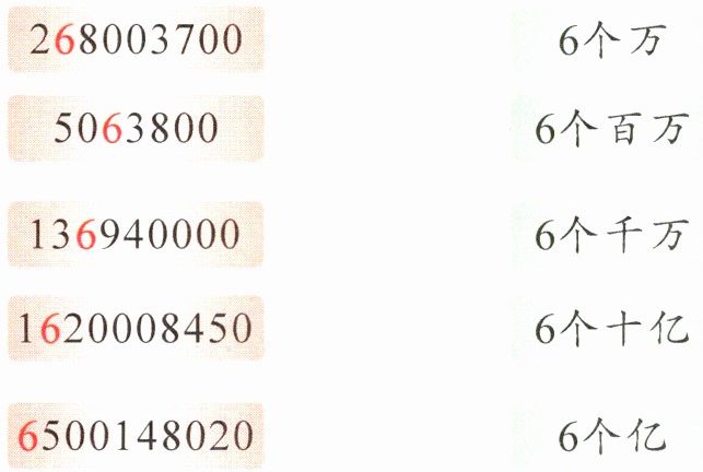 四、下面各数中的“6”分别表示什么意义?(连一连)