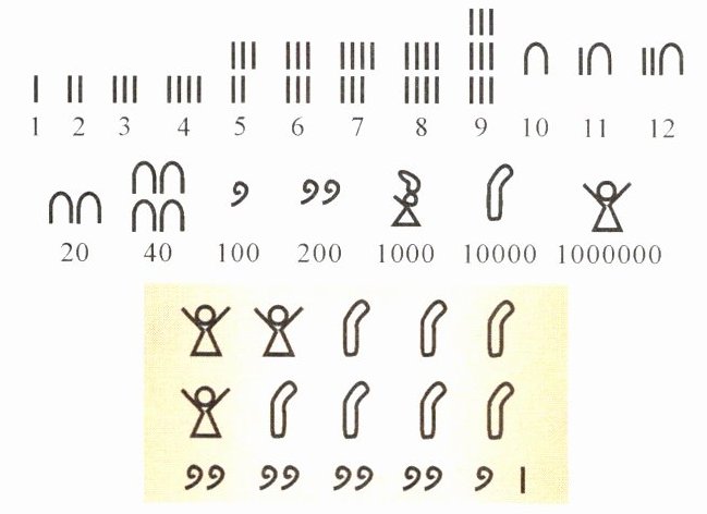 五、丁丁在埃及金字塔里找到了一张写有古埃及象形数字的纸条,上面数的总和用十进制计数法写作(