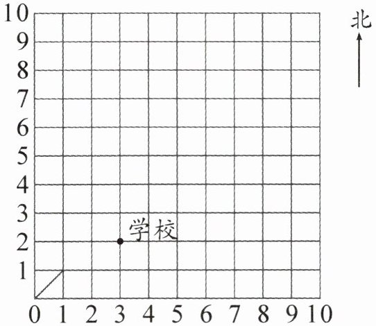 3. 文文家位于学校的北偏西 $45^{\circ}$ 方向 $600$ m 处,请在图中标出文文家的位置,并用数对表示出来。