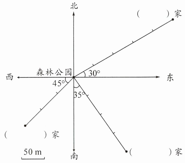 小白鸽:“我家在森林公园的南偏东 $35^{\circ}$ 方向上,距离是 $200$ m。”