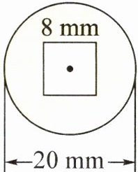 三、一个模具如图所示,这个模具的直径是20mm,中间有一个边长为8mm的正方形孔,这个模具的面积是多少平方毫米?