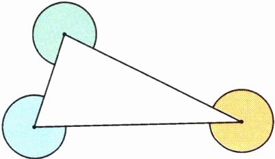 七、三个半径为 $ 2 \, cm $ 的圆的圆心正好在三角形的三个顶点上,你能算出涂色部分的面积吗?(提示:三角形的内角和是 $ 180^{\circ} $)