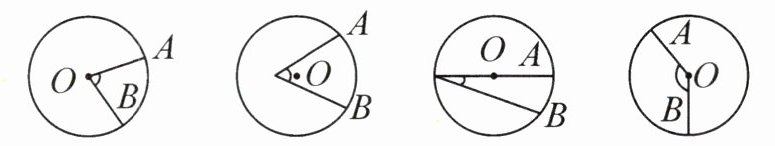)所围成的图形叫作扇形。像 $ \angle AOB $ 这样,顶点在(圆心
