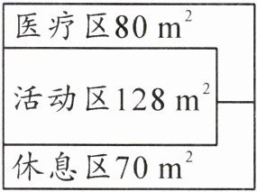 五、社区修建一个活动室,原设计方案如图所示。由于需要,现将活动区面积的$\dfrac{5}{32}$改为休息区。现在休息区的面积是多少平方米?