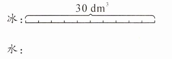 五、冰融化成水后,体积减小$\frac{1}{10}$。现有体积为$30 dm^3$的冰,融化成水后体积为多少立方分米?(先补全示意图,再列式计算)