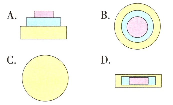 (1)小福过生日时的生日蛋糕如图,从上面看到的形状是( )。