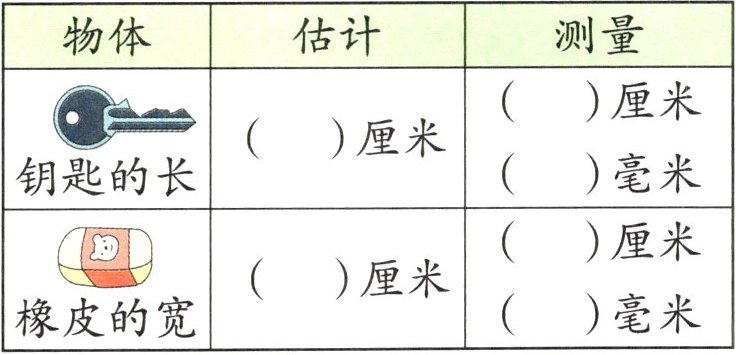 钥匙的长|( )厘米|( )厘米