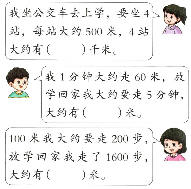 - 我坐公交车去上学,要坐4站,每站大约500米,4站大约有( )千米。