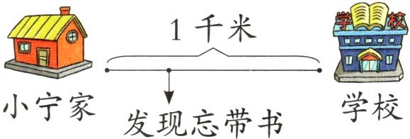 多走的路程:80+80+80=240(米)240+240=480(米)一共走的路程:1千米=1000米1000+480=1480(米)解析 此题可以先在线段图上分析清楚小宁这天走路的整个过程。一开始,走了3个80米(也就是240米)后,发现忘记带数学书,于是返回家中拿书,则多走了2个240米,也就是480米,再加上小宁家到学校的距离1千米(即1000米),就是这天早晨小宁上学一共走的路程,即1000+480=1480(米)。