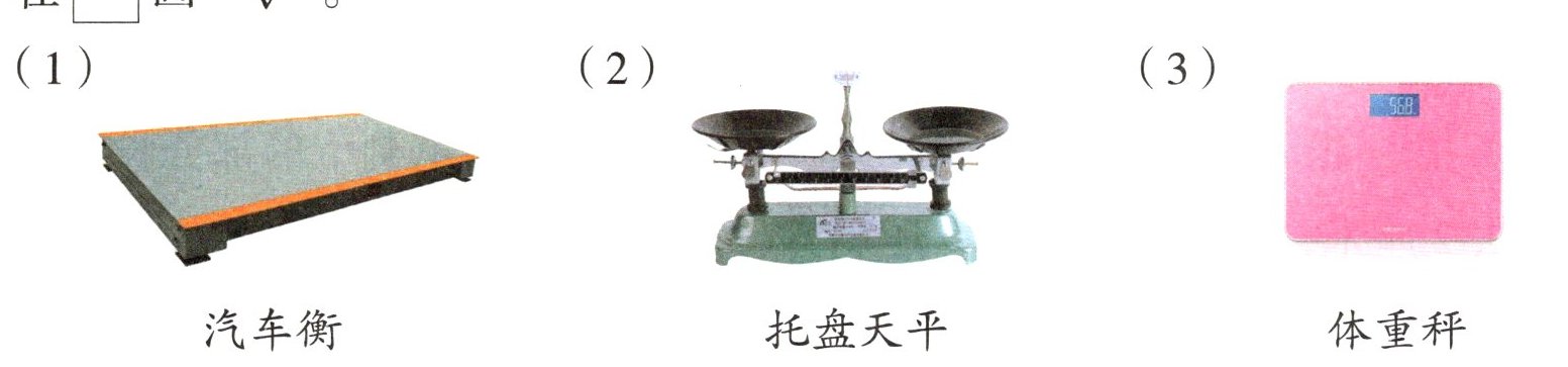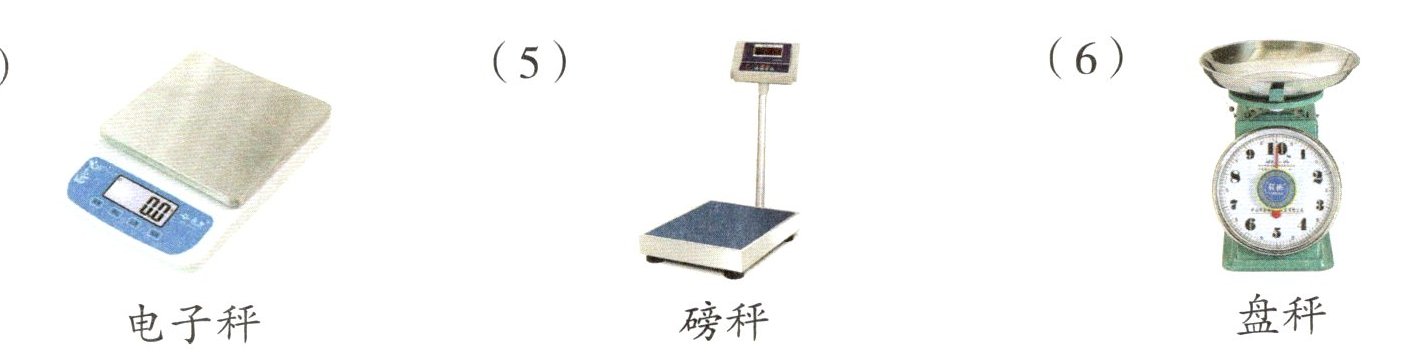 4. 下面是生活中常见的称重工具,它们分别适合称量以什么为质量单位的物体?在$□$画“√”。