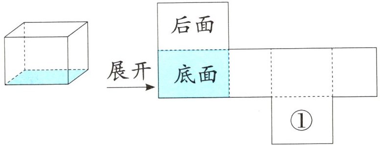 (3) 下面是长方体和它的展开图,①号面是长方体的( )。