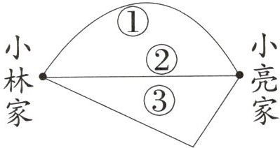 (4)如图,如果小林家到小亮家的第②条路长1200米,那么第①条和第③条路的长度一定( )。