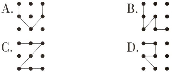 (1)张阿姨手机用的锁屏密码是图案密码,并且图案里有2个锐角和1个直角。张阿姨设置的图案密码可能是( )。