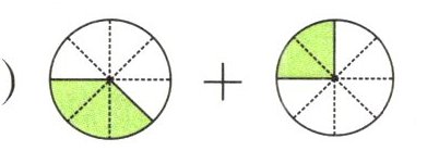 4.(1)$\frac{5}{8}+\frac{2}{8}=\frac{7}{8}$ (2)$\frac{5}{8}-\frac{2}{8}=\frac{3}{8}$