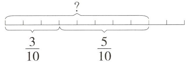 2.(1)$\frac{3}{10}+\frac{5}{10}=\frac{8}{10}$ (2)$\frac{5}{8}-\frac{2}{8}=\frac{3}{8}$
