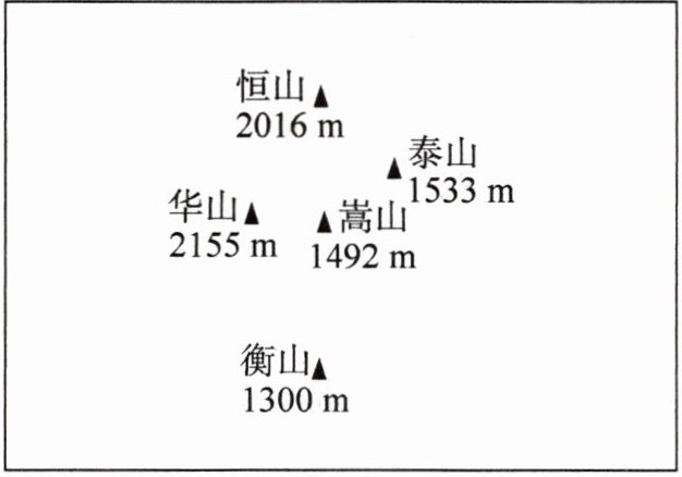 1.泰山、衡山、华山、恒山、嵩山是我国的五座名山,合称“五岳”。