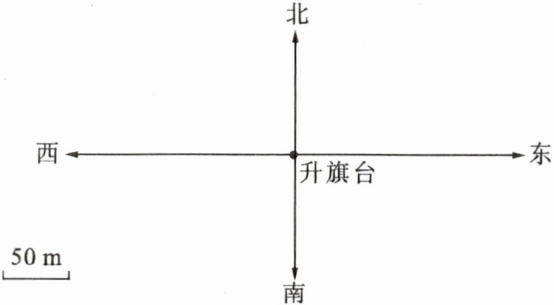 (2)单、双杠场地在升旗台的东偏南45°方向250 m处。