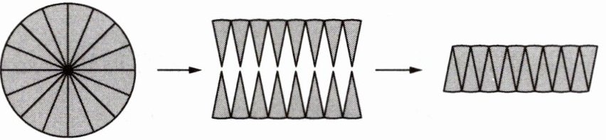 (2)如图所示,把一个半径为2 cm的圆分成若干等份,再拼成一个近似的长方形。