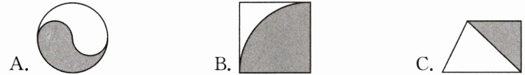 (4)下面图形中,空白部分和涂色部分周长相等但面积不相等的是(