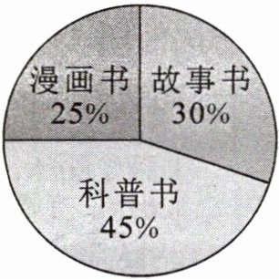 (5)故事书、科普书和漫画书的册数各占图书总册数的百分比情况如右图。故事书比漫画书多的册数占总册数的百分比是(