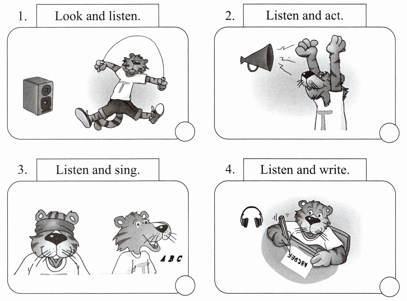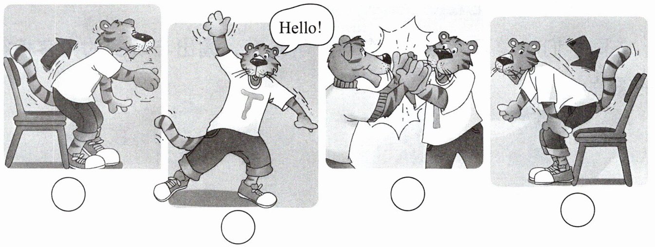 Toby 在和大家做游戏。听录音给图片排序,将数字序号写在〇里。