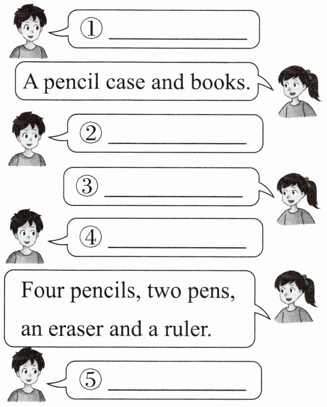 根据图片,选择相应的单词完成短文,将对应的字母序号写在横线上,并试着向同学们介绍你的学习用品吧!