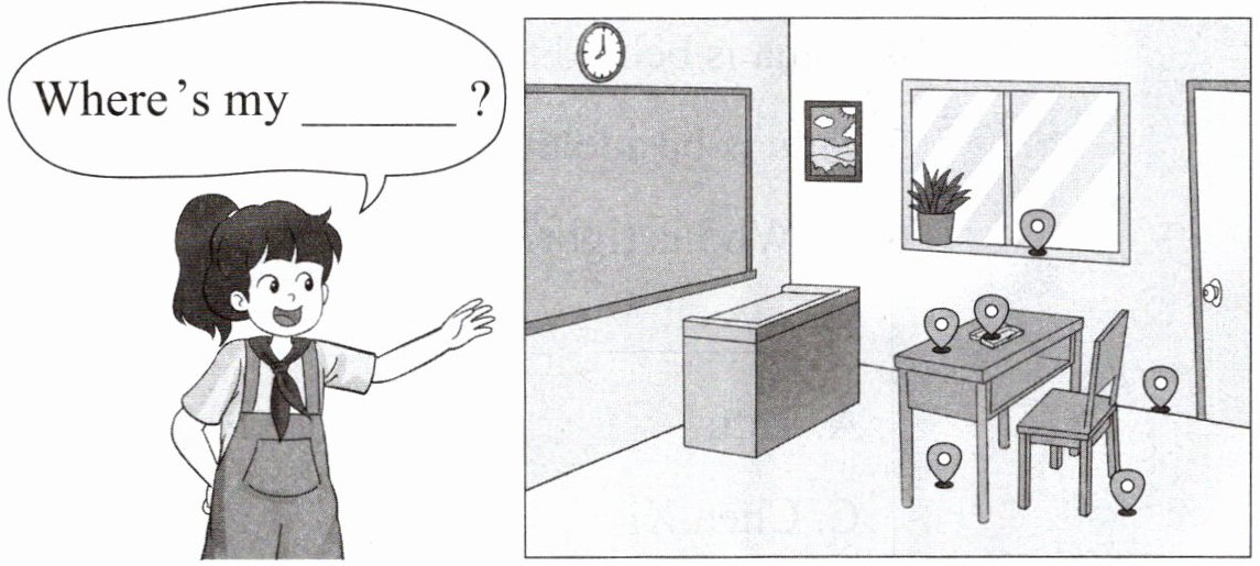 Nana 在教室里找不到自己的文具了,快来帮帮她!听对话,将 Nana 的文具连到图中相应的位置。