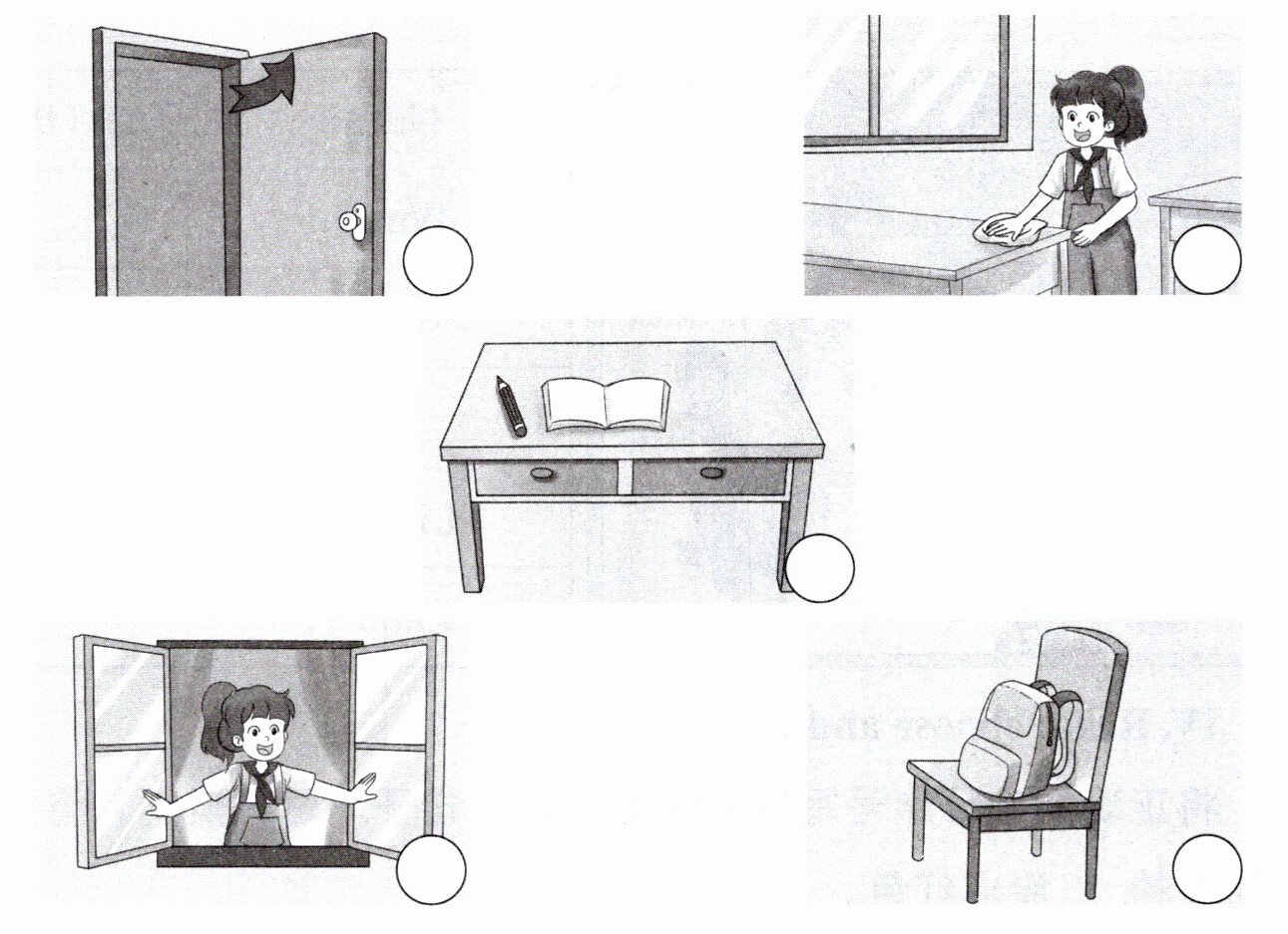Nana 每天很早就来到教室为大家服务。听录音,给图片排序。