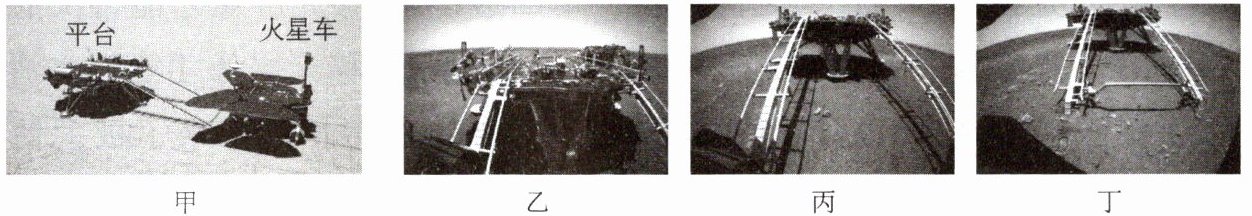 12. 2021年5月15日,中国探测器成功着陆火星,“祝融号”火星车驶离平台的过程如图甲所示,其后置照相机对着平台先后拍摄得到乙、丙、丁3张照片,下列有关说法不正确的是(