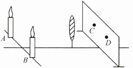 14. 在探究凸透镜成像的规律实验中,当两支点燃的蜡烛、凸透镜、光屏分别置于如图所示的位置时,光屏上C、D两处会得到清晰