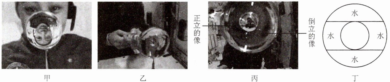 C.小丽:由图乙、图丁可知,在水球中注入空气后,可以形成左右两个凸透镜