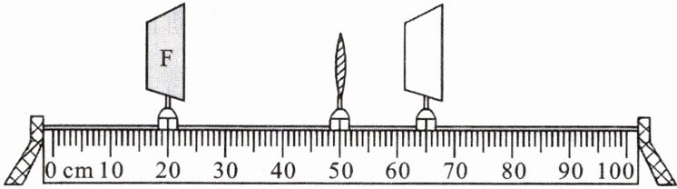 15. 如图所示,某同学用焦距为10 cm的凸透镜、高度为6 cm的F形光源、光屏和光具座等器材探究凸透镜成像的规律。