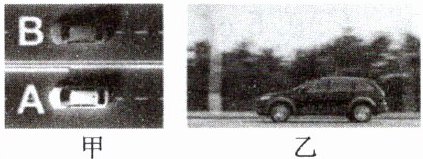 10. 小陈坐在图甲中的白色A车中,用相机拍摄旁边与其速度相同的黑色B车,拍出了有运动感的照片如图乙所示。下列说法正确的是(