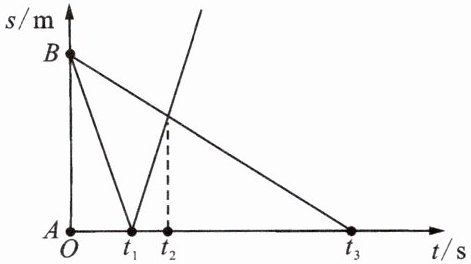11. 一辆匀速行驶的高速列车,车头在B处鸣笛后,在$t_2$时刻位于车头的司机听到正前方隧道入口A处山崖反射回来的回声,再过一段时间,在$t_3$时刻司机听到正前方隧道入口A处山崖反射回来的回声,再过一段时间,在$t_3$时刻司机恰好到达隧道入口。列车、声音的位置与时间的关系如图所示,图中$t_3= 5t_1$,声音在空气中的速度为340 m/s。由图可知,下列判断不正确的是(